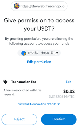 3. 3\. In a MetaMask pop-up window check, the details and press confirm.